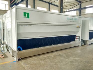 濕式除塵箱主要針對工業(yè)打磨,如石材、金屬、陶瓷、碳纖維制品、玻璃鋼、塑料制品等的打磨、拋光及注料口產(chǎn)生的飄揚粉塵進行除塵處理,有效改善車間生產(chǎn)環(huán)境。本產(chǎn)品內(nèi)部結(jié)構(gòu)系本公司專利產(chǎn)品,動力采用靜音風(fēng)機,具有吸力強,噪聲小(≤75db)、能耗低、使用壽命長等特點,過濾部分采用PVC過濾材料,過濾效率高,不堵塞、不老化、免更換、降低維修成本,同時過濾材料過濾層表面設(shè)有水噴淋裝置,形成水幕,在過濾材料和水幕的同時過濾作用下,吸入的粉塵隨水幕落入到水槽中,達(dá)到除塵的目的。