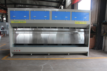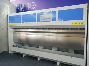 無泵水簾柜借助風(fēng)力作用提水形成水簾,無需水泵提水。避免了因水泵和管道堵塞、損壞引起的故障,大大提高了固體漆霧顆粒的凈除效果。其漆霧處理方法科學(xué)有效,是一種技術(shù)較為先進的漆霧處理設(shè)備。