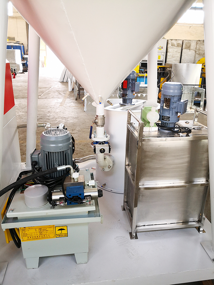 This set of equipment is used to clean up the mud water mixture produced in the production and processing of other equipment. It has the function of separating the mud water mixture into mud cake and water. The water can be recycled, environmental protection and energy saving.